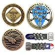 Custom Die Cast Zinc Challenge Coins extend the time-honored military tradition to corporate, law enforcement, fire and other industries and organizations. Coins create powerful and lasting recognition, award and branding campaigns. Coin pricing includes: * Custom shape with one or two sided designs. No tooling charge for pierced or cutout areas of design, * Includes Zinc base material with your choice of nickel, antique brass or antique copper finish. Other finishes available. * Includes up to 4 soft enamel colors. Resin enamel color fill also available. Die service charge is per side/design.