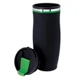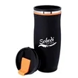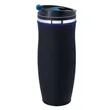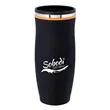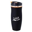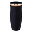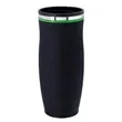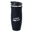 Drink in all the exposure and publicity you can in the Charles tumbler. This insulated stainless steel tumbler is 8 1/8" x 3 1/4" with a plastic liner, matte black exterior and screw-on, spill-resistant lid. Maintains the temperature of 18 ounces of your favorite hot or cold beverages for hours. Black with your choice of five colored accent bands. Add your school, sports team, organizational or company logo or message to create a bold branded giveaway for marketing and social activities and events.