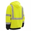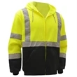 Class 3 Fleece Hooded Zip Safety Sweatshirt. Anti-peel 100% Polyester Fleece material. 2" Silver Reflective Tape. Two Lower Pouch Pockets. Certification: ANSI/ISEA 107-2010 Class 3. Color: Lime.