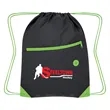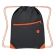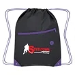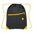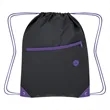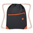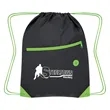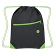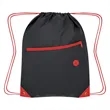 Made Of 210D Polyester. Large Front Zippered Pocket. Built-In Slot For Earbuds. Reinforced Eyelets. Drawstring Closure. Spot Clean/Air Dry.