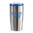 The Economy 20 oz. Tumbler features a stainless-steel, double wall outer shell with a plastic liner and a non-slip base. The snap on, clear lid with slide closure sports a rubber seal for a secure fit.