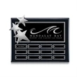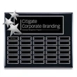 This horizontal wall plaque features three striking stars in its header. Comes complete with 20 blank perpetual plates and a high gloss, piano finished ebony. This type of award is perfect for recognizing a team effort or honoring an ongoing achievement such as employee of the month. The handsome style will complement any decor. With our laser engraving method, you can be certain that this personalized plaque will shine for years to come!