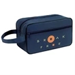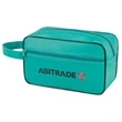 Perfect for your customers who frequently travel, this convenient toiletry & travel kit will make a lasting impression on every recipient. Similar to the utility travel kit, this kit offers a smaller alternative with a single zippered design. Featuring a main zippered opening for your larger items, an extra zippered front pocket and a self-fabric carrying handle, this 10"L x 6"W x 4"H kit can be customized to represent your business.