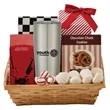 Offer this Cookie and Coffee Holiday Basket to your customers for Christmas! It comes with treats from the Noble Knight almond tea cookies and chocolate chunk cookies with cool peppermint puffs as well! You can write your own message to greet your clients during the holidays! Make it a very personal present so that they know you are thinking of them! The basket is cello wrapped and will include your company's logo on a tied ribbon finished.
