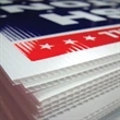 These advertising yard signs are water proof and are perfect for indoor/outdoor use. Signs are made of a rigid 4 mil. coroplast material. Great for political events, real-estate signage and promoting any event or business. Includes process print 3 or more colors, choose from our PMS Color Chart. H-Frames sold separately.