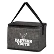 Made Of 80 Gram Non-Woven, Coated Water-Resistant Polypropylene. Foil Laminated PE Foam Insulation. 18 1/2" Handle. Zippered Main Compartment. Holds Up To 8 Cans. Spot Clean/Air Dry.