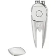 Combination divot tool and magnetic ball marker. Includes belt clip. Can also be used to keep putter handle off wet grass by resting handle on tool.