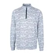 The iconic Traverse Stretch Eco Camo Print Quarter Zip pullover is engineered for exceptional versatility, designed to be your favorite men's quarter zip long sleeve pullover for the office, golf, walking, hiking, boating, skiing, travel or WFH. Our high quality 2-ply DryTec matte finish polyester is blended with spandex in a double knit to achieve exceptional durability, stretch for comfort, and UPF 50+, all with a supremely smooth and modern look. - 70% Recycled Polyester, 20% Polyester, 10% Spandex - Material made from 17 post-consumer recycled plastic bottles - 50 UPF+ UV Sun Protection - Matte fabric finish - Moisture-wicking - Flat lock construction at seams for clean fit - Reflective tape at zipper - Silver CB pennant heat transfer print at back half moon - Imported - Machine was...