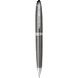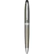 Exclusive design features rubberized capacitive touch stylus tip that is ideal for touch screens such as iPhones and iPads as well as everyday uses such as touchscreen payment pads used in grocery stores, gas stations, department stores and ATMs. Detailing on bottom barrel and clip complement the Cutter & Buck® Pacific Series line exclusive to Leed's. Pen also includes premium black ballpoint ink cartridge and 1.0mm pen tip. Laser finish is shiny brass.