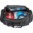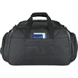 Exclusive design features large main compartment with zippered mesh pocket for golf gloves or other golf accessories. Dedicated external pocket with soft, faux-fur lining for your iPad or rangefinder. Side ventilated shoe pocket with neoprene grab handle, and additional zippered side pocket with mesh water bottle pocket. Front zippered pocket offers additional organization and accessibility. Additional quick access pocket on back for passport or airline ticket and trolley strap make it the perfect travel duffel. Removable shoulder strap with premium hardware and Cutter & Buck® lining and accents. Made from a durable ballistic poly with heavy duty vinyl bottom for additional protection and can be wiped clean.