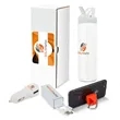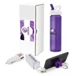 Holding a technology themed seminar, trade show, convention or other event? Make your guests feel at home with this tech-heavy gift set. This three-piece set includes a 25 ounce PET flip-spout bottle with integrated carrying handle; a twin port 2A USB 12V car charger; and a 3-in-1 charging cable set with a dual head MicroUSB, 5 Pin and Type-C connectors with carrying case, cellphone stand and aluminum carabiner. Choose a color scheme and add your organizational or company logo, emblem or message to create a valuable welcome package. Each set includes full-color custom packaging.
