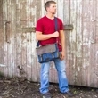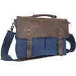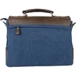 This Dax canvas messenger bag is a dependable essential for anyone on the go! It provides double security with its top-zipper closure and fold-over flap with buckles. It has several small inside pockets for cellphone, earbuds, pens and other techie items. The 13 1/2" W x 8 1/2" H padded laptop section will fit most laptops. The 16" x 12" x 4 1/2" bag can be carried with the removable shoulder strap that adjusts from 36" to 61" or with the sturdy leather handle. The casual, lightweight and ultra-functional messenger bag gets a trendy re-design with the stylish blue colorfast cotton canvas. Clients are sure to be excited about toting your brand all around town!