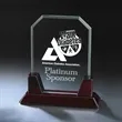 Acknowledging tradition with a contemporary angle, this glass rectangle plaque sports polished bevels, clipped beveled corners, and a glowing rosewood base.