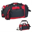 Made Of 600D Polyester. Detachable/Adjustable Padded Shoulder Strap And Web Carrying Handles With Hook And Loop Closure Comfort Grip. Side Web Pull Handle With Comfortable Rubber Grip. Double Zippered Main Compartment. Side Double Zippered Shoe Compartment. Front Double Zippered Pocket. Side Zippered Pocket. Side Mesh Pocket. Mesh Closure For Circulation Of Air. Bungee Cord Storage On Top. Spot Clean/Air Dry.