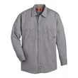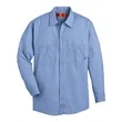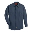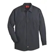 Dickies Industrial Long Sleeve Work Shirt ul)4.25 oz./yd2, 65/35 Polyester/cotton, permanent press poplin. Wrinkle Resistant finish. Two piece convertible collar with sewn in stays. Hex chest pockets with pencil stall. Industrial Laundry, Home Wash. Long sizes available under style L