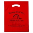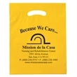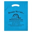 Tuck away all of your event or party favors into this Die Cut Bag. Lightweight and easy to carry, this plastic bag features a die cut fold-over reinforced handle with a 3" gusset, 2.5 mil. low density film thickness and measures 15" x 19". These carriers are also recyclable and a great way to go "green". *Purple, Hunter Green, and Navy Blue bags can only be printed on with Silver, Gold, or Copper stock inks. Choose from a variety of bag and imprint colors to customize these bags to your liking. Great for hotels, conventions and tradeshows! / Set-up is per design / Run charge is each per additional color per location (up to 2 spot colors per side with 1/2" space between them) /