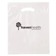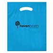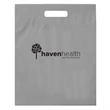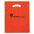 Tuck away all of your event or party favors into this Die Cut Bag. Lightweight and easy to carry, this plastic bag features a die cut fold-over reinforced handle with a 3" gusset, 2.5 mil low density film thickness and measures 12" x 15". These carriers are also recyclable and a great way to go "green". *Purple, Black, Hunter Green, and Navy Blue bags can only be printed on with Silver, Gold, or Copper stock inks. Choose from a variety of bag and imprint colors to customize these bags to your liking. Great for hotels, conventions and tradeshows! / Set-up is per design / Run charge is each per additional color per location (up to 2 spot colors per side with 1/2" space between them) /