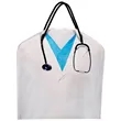 100 GSM laminated Non-Woven fabric with imprinted lab coat and stethoscope graphic ;Imprinted lab coat and stethoscope graphic; 28"l x .03"w Polypropylene rope handles; Reinforced metal eyelets; Recommended weight tolerance: 6.5 lbs; Product Size: 15" w x 16.125" h x 4" d;