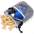 Perfect for dog training! Made of lightweight weatherproof nylon fabric that keeps your dog treats dry. Choose to wear using the removable adjustable waistband, removable shoulder strap, or strong metal belt clip. The convenient drawstring securely holds in generous amounts of dog training treats, accessories, and dog toys. Enjoy the easy to clean bright green lining which makes it simple to spot pet treats right when you need them. Safely store your smartphone, money or keys in the two zippered pouches or front mesh netting. You'll love the convenient built in dog poop bag holder so your dog waste bags are ready right when you need them. Add a brand name or logo to the product and make it your next marketing giveaway.