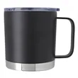 Enjoy your favorite drinks at the campsite or indoors in this handsome Metal Camper mug! This 3 5/8 x 4 1/8 x 5 mug is made of double-wall insulated stainless steel to maintain the temperature of 16 ounces of your favorite hot or cold drinks for hours. The design features a stainless handle and a push-on spill-resistant sliding lid with a sweatproof construction. Choose from three cool colors and add your school, sports team, organizational or company logo or message through our signature screen print process to make it your own.