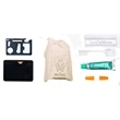 Don't let your customers leave without this essential travel kit! Inside an attractive, imprinted 5 1/2" x 4" tin comes a waterproof poncho, 10 tool multi-tool card, ear plugs, toothbrush, and toothpaste. This has everything one needs for a successful staycation or an extended vacation. You can offer this at airports, gift shops, tradeshows, and more. Add your company name or logo with our full color pad printing method and get this show on the road!
