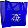 This large, lightweight, dura-mesh tote adds a front pocket for a smooth imprint area and for holding extra accessories. Perfect for the beach, shopping, or travel (security friendly).