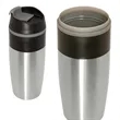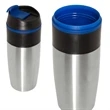This Easy-Sip 15 oz. tumbler is a great eco-friendly freebie for your upcoming campaign! Measuring 8" tall with a 2 1/2" bottom diameter, this stainless steel double-wall tumbler with plastic liner features a screw-on lip with a flip-top spill guard. It also has contrasting color accents and a slip-resistant rubber bottom. This BPA-free bottle keeps beverages hot or cold for hours! Add your custom imprint and hand out this travel mug at your next trade show or convention.