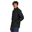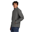 Eddie Bauer Stretch Soft Shell Jacket With 4-way stretch, a subtle ripstop texture and weather protection-these are the next-generation soft shell jackets to wear on the trails or around town Made for mobility, these 3K/3K waterproof, breathable jackets with a durable water-repellent (DWR) finish feature an interior storm flap and chin guard Streamlined and refined elements include an invisible zippered chest pocket, reverse coil center front zipper with an Eddie Bauer logo zipper pull Adjustable locking drawcord hem and reverse coil zippered hand pockets Embroidered Eddie Bauer logo on left shoulder Made of 90/10 polyester/spandex bonded to a waterproof film insert and a 100% polyester fleece lining.