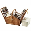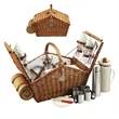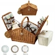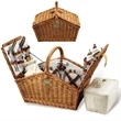 The Huntsman Willow Picnic Basket has a traditional style that's sure to capture the attention of your target audience! Hand crafted using full reed willow, this generously sized basket is made to last. Easy to pack, carry and enjoy, it includes quality components including ceramic plates and glass wine glasses. It includes four ceramic plates, glass wine glasses, stainless flatware and cotton napkins and one food cooler, insulated wine pouch, hardwood cutting board, spill proof salt and pepper shakers and wood handle. Blanket and coffee service are also available. Leave a lasting impression on recipients!