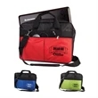 150D polyester - Front zippered pocket with organizational compartments - Back zippered pocket for all your extras - Inside padded computer pocket and velcro pocket - Extra long adjustable, detachable shoulder strap