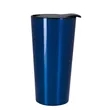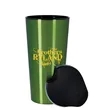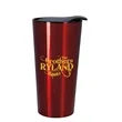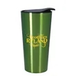 Drink in all of the exposure and publicity you can with this stylish metallic tumbler. Crafted from double-wall insulated stainless steel with a plastic liner, this 6 3/4" x 3 5/8" vessel maintains the temperature of a big 16 ounces of your favorite hot or cold beverages for hours. The splash resistant push-on lid makes for easy sipping. Select from five inspired shades and add your school, sports team, organizational or company logo or message to customize.