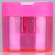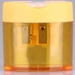 Pencil sharpener features a flip-top lid and a shavings box. Equipped with a stainless steel blade fits 8 mm to 12 mm pencils. It features two holes, made of ABS. Stable case prevents pencil shaving spills, and easy to open and clear. It makes a great desk accessory for school or office. Customize with an imprint of your company name and logo to make a lasting impression on your customers.