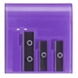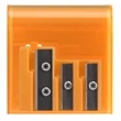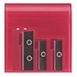 This handy sharpener equipped with a stainless steel blade fits 8 mm to 12 mm pencils. It features three holes, made of clear plastic case. Stable case prevents pencil shaving spills, and easy to open and clear. It makes a great desk accessory for school or office. Perfect for pairing with your company name and logo. Enhance your marketing campaign with this practical product!