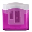 This handy sharpener equipped with a stainless steel blade fits regular size pencils. It features two holes, made of clear plastic case. Stable case prevents pencil shaving spills, and easy to open and clear. It makes a great desk accessory for school or office. Perfect for pairing with your company name and logo. Enhance your marketing campaign with this practical product!