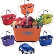 Getting purchases home from the market will be a breeze when you add this foldable shopping basket to your giveaway incentives! Made from nonwoven polypropylene, it can be used to carry heavier things and is recyclable and reusable. It conveniently folds down to be stored for later use. This makes an ideal promotional product for grocery stores, markets, bookstores and more. Just add your branding information for a unique advertising tool!