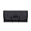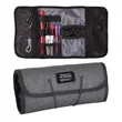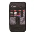 This pouch is made from water-repellent material and has compartments for everyday tech items, wallet cards, keys, money, pens, and more. It has a tabbed elastic strap with metal hook for easy closure. Essential for your travel or first aid accessories, or as a small makeup roll.