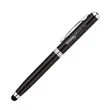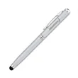 4-in-1 cap-off style aluminum ballpoint pen features chrome trims, Class II laser pointer, LED light, and capacitive stylus that works with touch screen devices. Three mercury-free AG3 / LR41 batteries included.