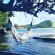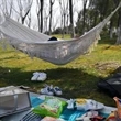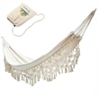 Made from canavas. The hammock can easily bear the weight of two people, allowing you and your family to rest in the hammock together. The maximum load-bearing capacity is 450bls! The whole hammock can be folded and placed in a small bag, which is convenient to carry around. Simple installlation and easy to use. Whether it is a seaside holiday, balcony decoration, bedroom decoration or use it in a cafe, it is very suitable. 94.5" x 59 x 0.79"