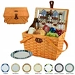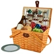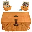 Pair up clients to spread the word about your brand with this Frisco picnic basket for two! It has a vintage appeal with the hand woven traditional wood slat material and is fully lined. It features swivel wood handles and faux leather straps and closure. The set includes coordinating melamine plates, cotton napkins, glass wine glasses, stainless steel flatware and wood handle corkscrew. They'll love sharing the word about your services with such a functional and attractive marketing tool!