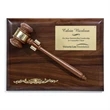 Our full-functioning, solid American walnut gavel is mounted on a walnut plaque with hand-rubbed radius edges and held in place by a gold finished steel tension bracket. The plaque is detailed with a brass plate and exquisite antique bronze finish, hand cast metal flourish.