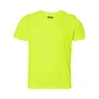 From one of the most trusted brands in the T-shirt industry, this Gildan® Youth Performance tee works hard all day thanks to AquaFX® wicking technology and Freshcare® anti-microbial treatment. This short sleeved top will keep you cool and dry during a hot summer day, or any physical activity! Made of 4.5 oz. 100% polyester, the tee features 5/8" rib collar, 5/8" hemmed cuffs and bottom hem. Choose from an array of colors and sizes. Blank product.