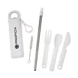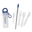 The Griffith 3-in-1 Metal Straw & Cutlery Set is the perfect companion for office, picnics or travel. The reusable set includes a metal telescoping straw with silicone tip and cleaning brush and a nesting 3-pc spoon, knife and fork set packed together in a carry case. Hang the plastic case on your bag or belt loop with its convenient plastic carabiner and carry it with you. The case's lid also has an integrated bottle opener so you can readily enjoy your favorite beverage.