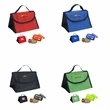Always have your food kept in the best way possible with this Lunch bag containing food container. The bag itself is made of a tough 210D polyester with foil laminated PE foam insulation while the food container has two food compartments with a fork and knife. The bag and food container is made to ensure that your food is kept nice and warm. This bag also has an ID holder for identification and is easily carried around with web carrying handles. The bag contents are fastened and kept safe with Hook and Loop nclosure. This item should be spot cleaned and dried to remove stains.