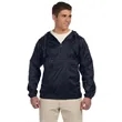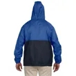100% nylon; Water-resistant;Lightweight packable hooded pullover with quarter-zip entry; Drawstring hood; Front welt pockets; Center-zip pocket; Can be easily attached to belt when stored in pouch; Full elastic cuffs; Hem casing with drawcord;