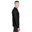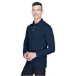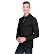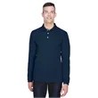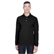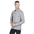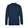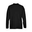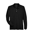 65% polyester, 35% cotton pique; silky hand; Wrinkle-resistant; reduced shrinkage;Three-button placket; Flat-knit collar and cuffs; Hemmed bottom with side vents; Sideseamed;
