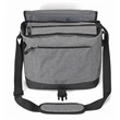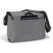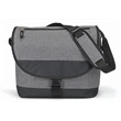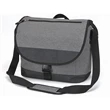 Heathered messenger computer bag made from 300D polyester with heavy vinyl backing. Features are zippered front pocket under front flap, interior multi organization pockets and padded laptop/tablet compartment. Zippered back pocket, adjustable padded shoulder strap and top grab handle.