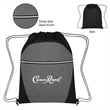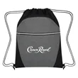 Made Of 600D Polyester. Front Zippered Pocket. Trendy Silver Accent Zipper. Drawstring Closure. Spot Clean/Air Dry.
