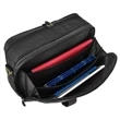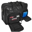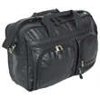 Multi pocket simulated leather attache with black lining. Features a double zippered main compartment, rear three sleeve accordion file compartments secured by a double zipper, rear slash pocket, detachable/adjustable shoulder strap, brass colored hardware and black zippers.