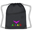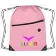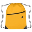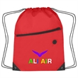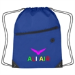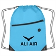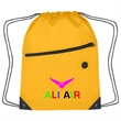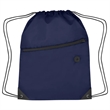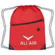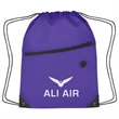 Made Of 210D Polyester. Large Front Zippered Pocket. Built-In Slot For Earbuds. Reinforced Eyelets. Drawstring Closure. Spot Clean/Air Dry.