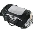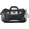 Large zippered compartment. Front zippered accessory pocket and earbud port. Side mesh pocket and elastic bungee cord. Two large zippered side pockets. Hidden interior wet pouch. Detachable, adjustable shoulder strap.